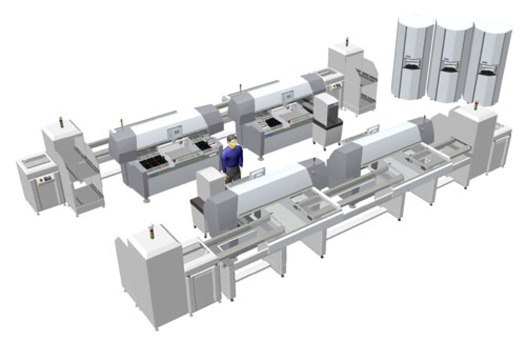 Imagine having a high-volume line with all the flexibility that Mycronic is known for. Imagine going from prototype to volume with no re-programming, no re-tooling and no hassle of setting up new vision camera parameters. It's not only possible, with the MY200 series it's the financially sound thing to do. Implementing a single-vendor solution will reduce training and maintenance cost, as well as allowing for a much higher degree of freedom when it comes to staffing and planning issues.