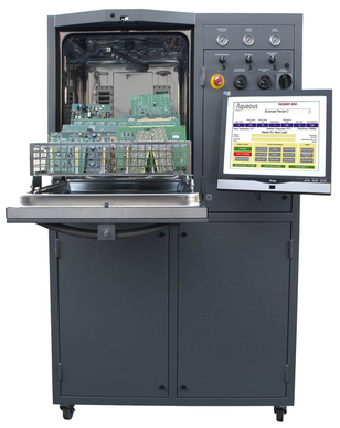 is gentle enough not to damage delicate parts and is highly effective in the removal of dried pastes on fine-pitch stencils. Aqueous Technologies' semi-automatic ultrasonic stencil cleaning systems are all designed to accommodate stencils, screens or misprinted assemblies up to 29" x 29" (736mm x 736mm).